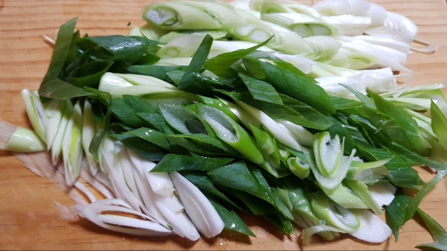 ● 대파를 씻어 적당한 크기로 자르고, 양파를 얇게 슬라이스 해주세요.