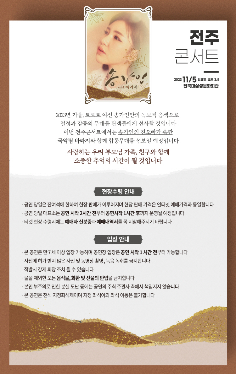 2023년 단 3번의 송가인 콘서트 일정이 있습니다.