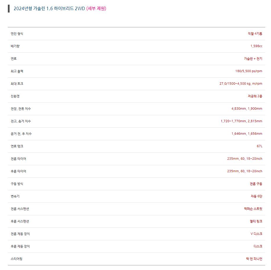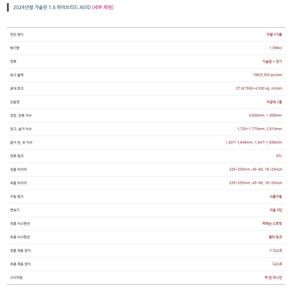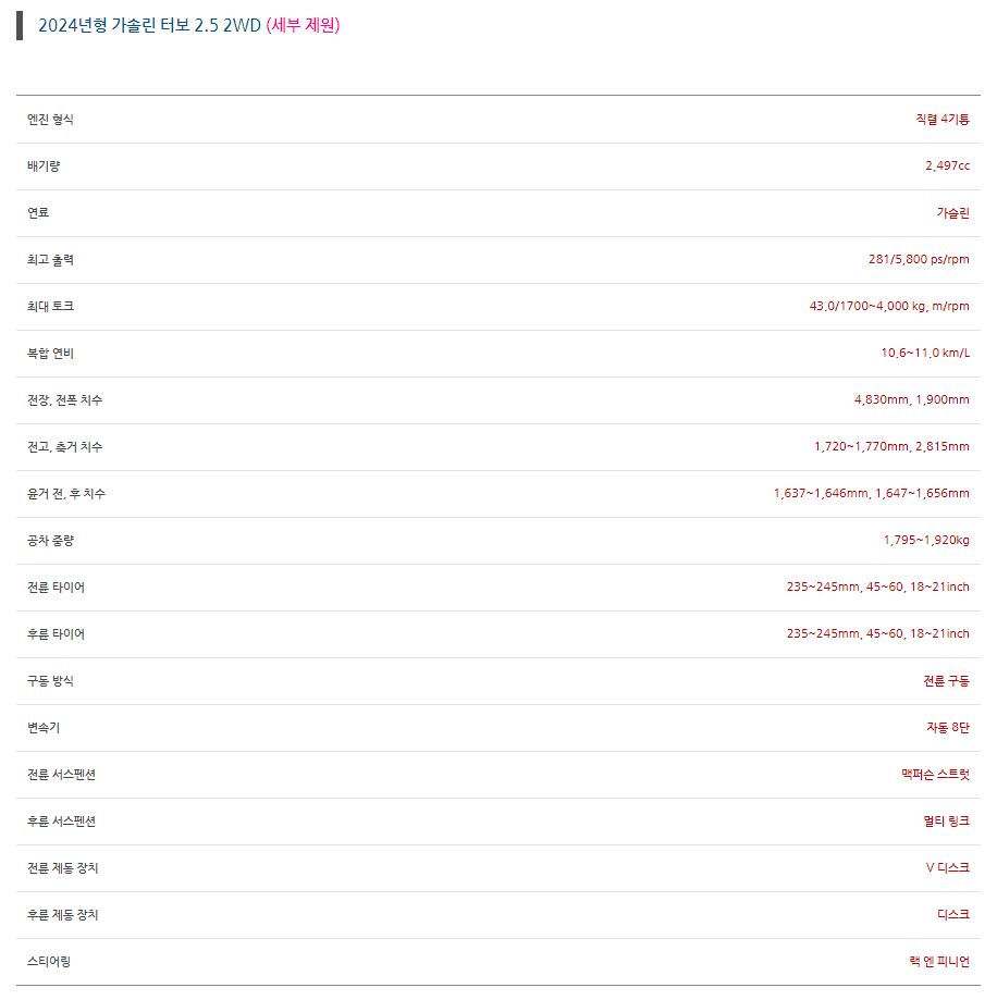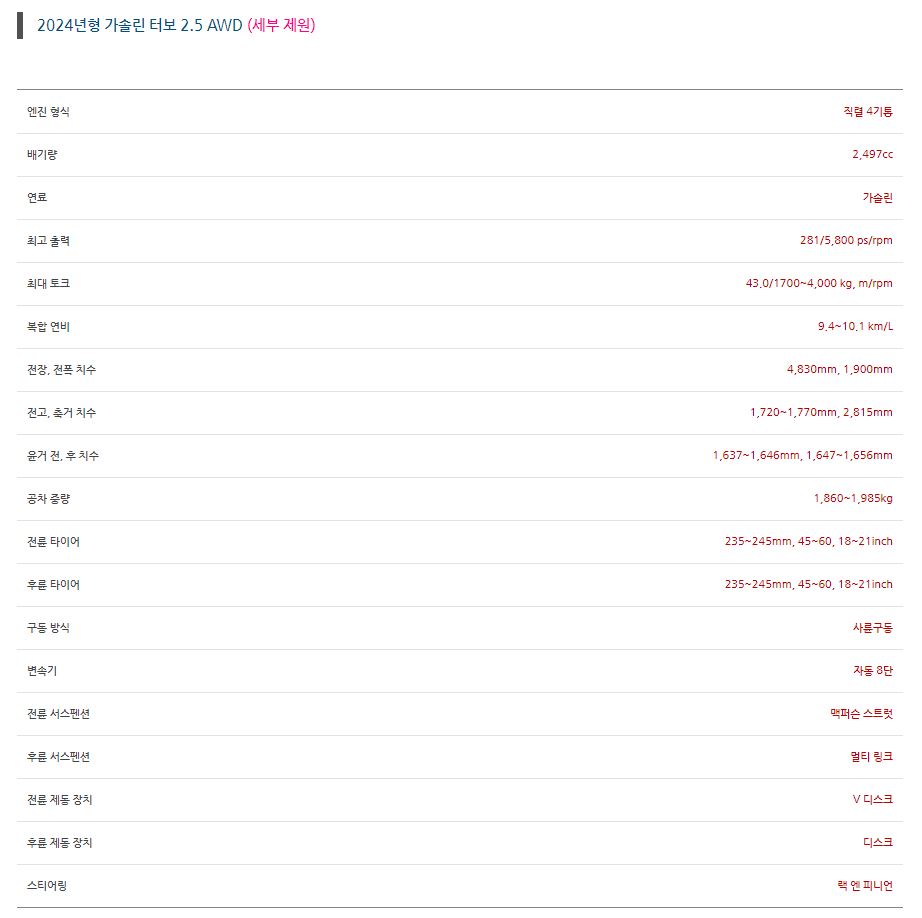 - 가솔린 2.5터보와 1.6 터보 하이브리드 두가지 엔진 라인업