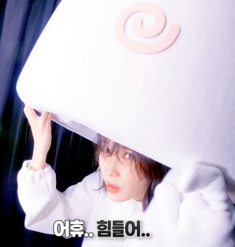 영상 속에서 아이유는 최근 개최된 자신의 전시회에 마시멜로 탈을 쓰고 깜짝 방문했습니다. 이날 아이유는 깜짝 방문한 뒤 탈을 벗었지만 "내가 아무리 발광을 해도 날 안 봐주더라"라며 아쉬움을 토로했습니다.