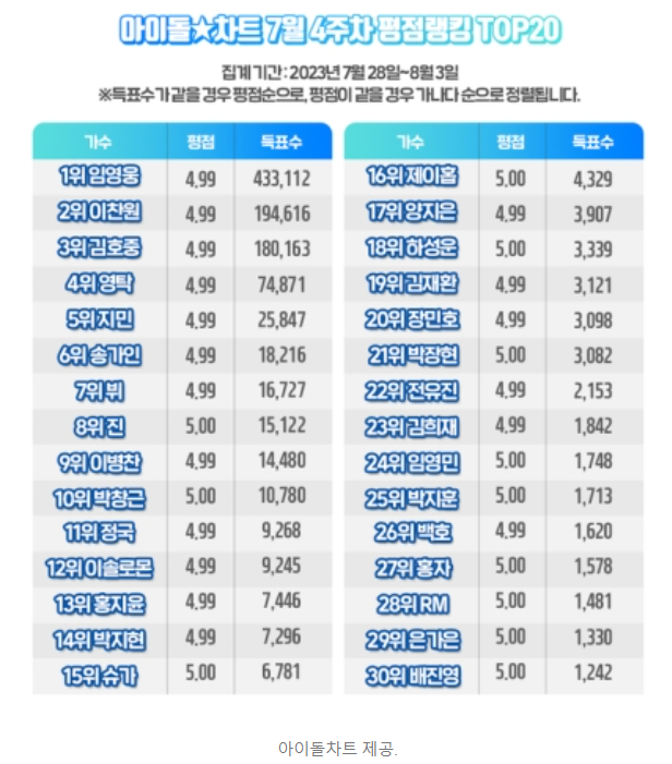 임영웅은 현재 123주 연속으로 아이돌차트 1위를 지키고 있습니다. 정말 최고의 나날을 보내고 있는 임영웅입니다.