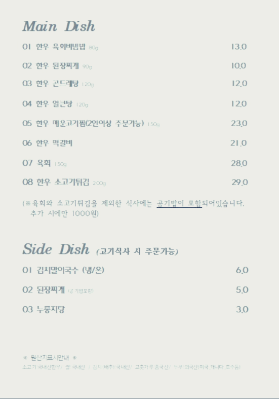 맛있는 한우를 먹고 싶을때 가기에 좋은 식당인것 같습니다.