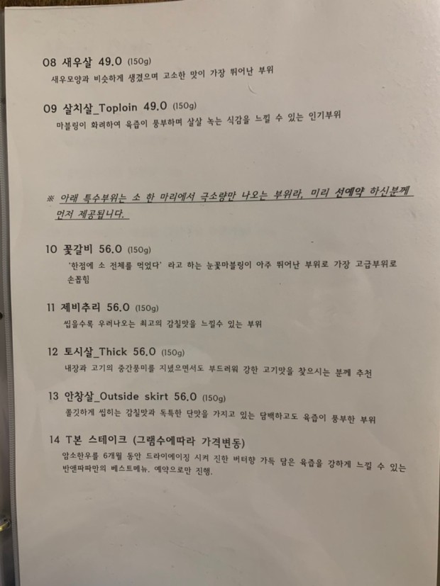 첫 주문은 같은 종류의 부위를 2인분 이상 주문하고 그 후에 1인분씩 추가로 주문을 할수 가 있습니다.